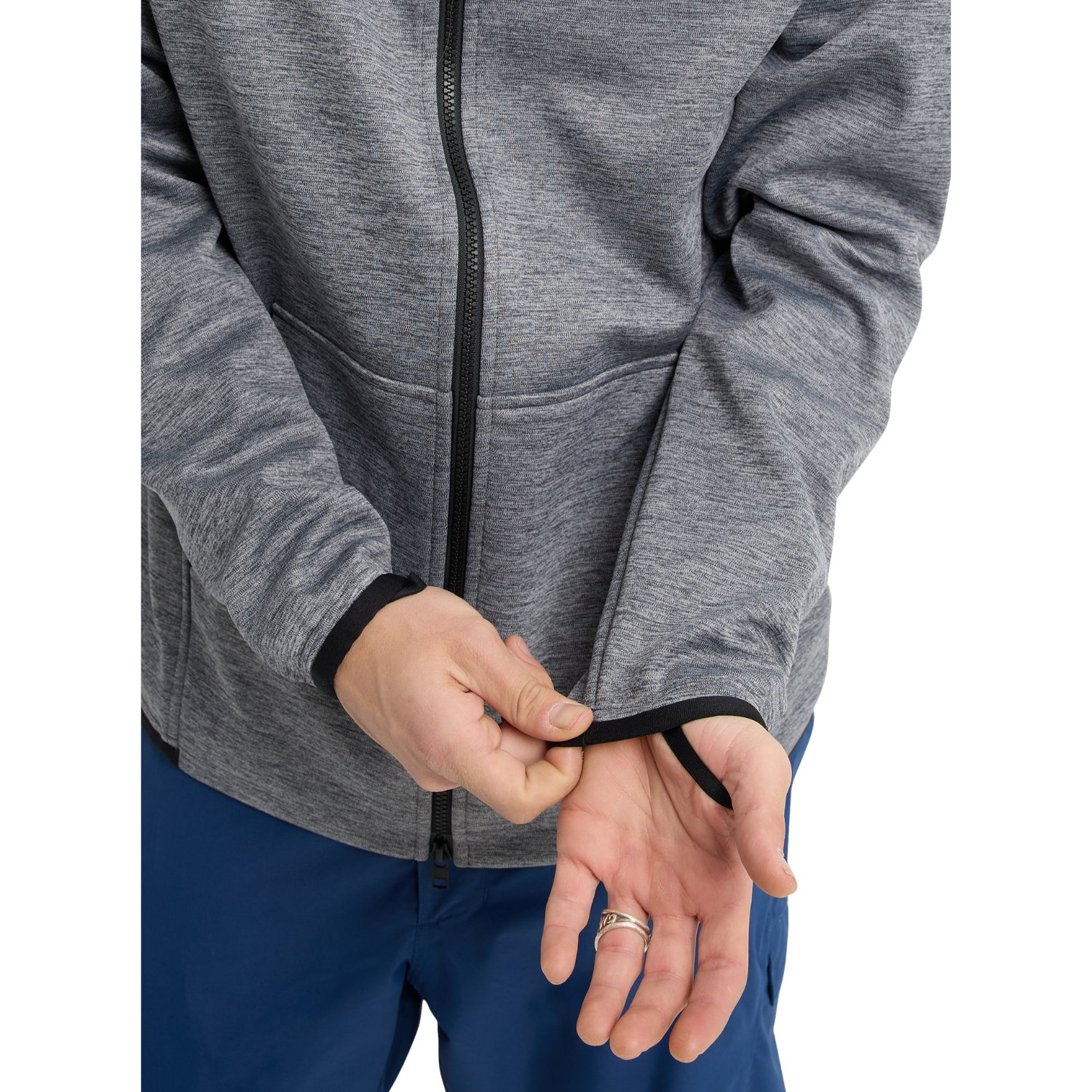 - Features: Thumbloop cuffs, raglan sleeves, media port, stretch binding at cuffs and hem, bluesign® approved materials