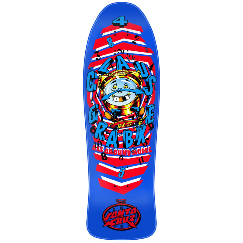 The Santa Cruz Grabke All Around Reissue Deck honors German skate legend Claus Grabke with a faithful return of his signature model. Originally released during Grabke’s influential 1980s run, this deck features Jim Phillips’ iconic clock graphic and an old-school shape that’s built to ride or hang. With its bold design and smooth performance, this reissue captures the energy and innovation Claus brought to skateboarding.