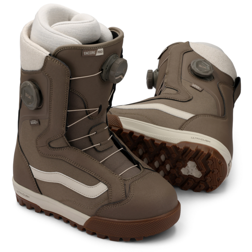 The 2026 Women’s Vans Encore Pro Snowboard Boots deliver timeless Vans styling with high-performance features for all-mountain riding. Featuring a responsive medium flex (5–6/10), a dual-zone BOA® Fit System with Vans Custom Focus and Slide Guide, and a cozy yet supportive V2 UltraCush™ liner with Smartwool®, these boots provide the control and comfort needed from first chair to last. With a cushioned V2 POPCUSH™ footbed and grippy V2 Waffle Pro outsole with UltraCush™ midsole, the Encore Pro offers durability, warmth, and precision in a boot designed to ride over and over again.