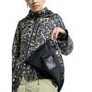- Zippered microfleece hand-warmer pockets, chest pocket with hidden zipper entry, media/goggles pocket, and mesh dump pocket