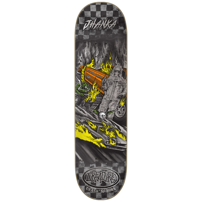 The Creature Gonzalez Crash and Burn VX Deck 8.37" x 32" brings raw aggression and next-gen construction to Milton Martinez’s pro model. Known for his fearless gaps and total commitment, Milton’s VX deck is built with 5 plies of North American maple reinforced by 2 layers of Quad X tech for unrelenting strength and snap. Featuring a bold, explosive graphic and a versatile popsicle shape, this deck is ready to take serious punishment—just like Milton.