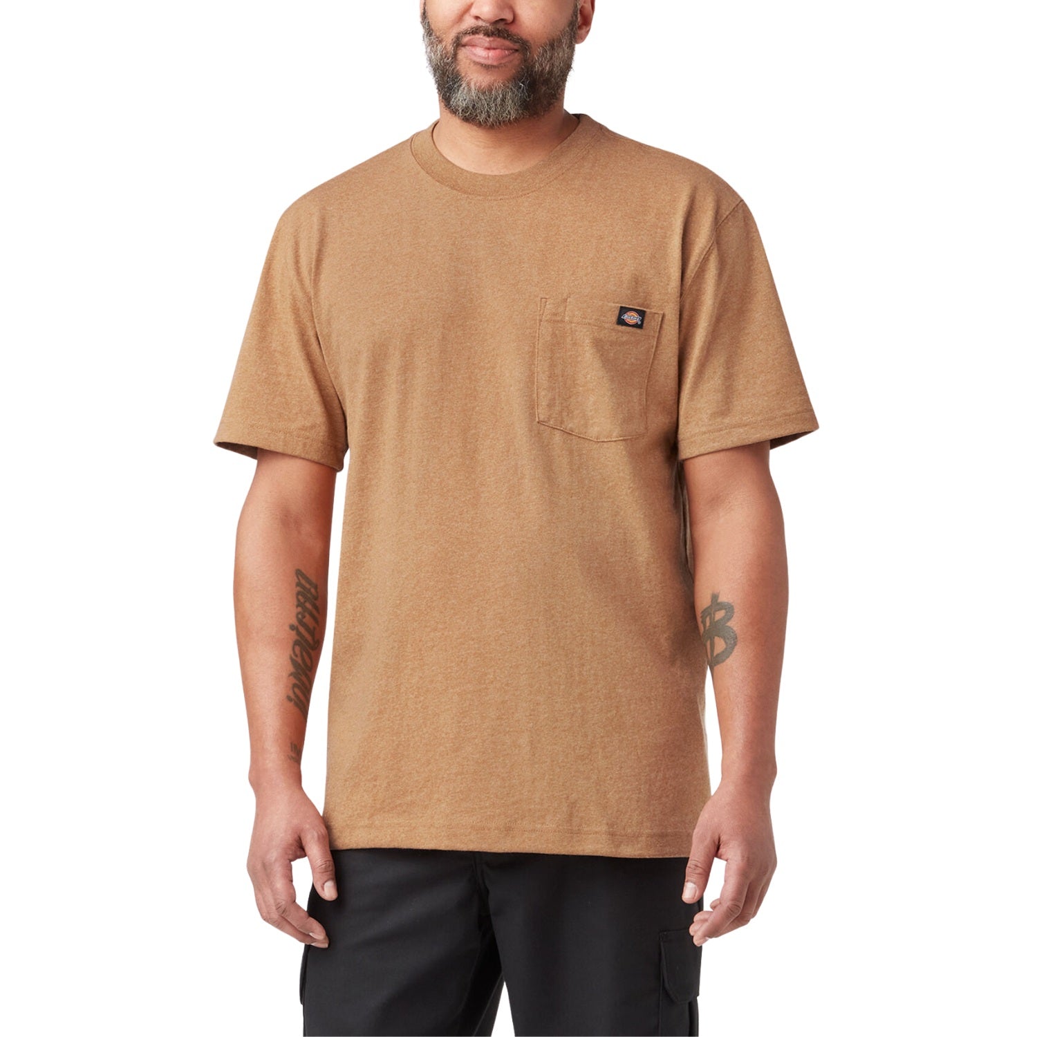The Dickies Heavyweight Short Sleeve Pocket Tee is a durable and comfortable staple designed for both work and casual wear. Crafted from heavyweight jersey knit fabric, this tee offers a relaxed fit with a longer tail for added coverage. It features a rib-knit crewneck collar, taped neck and shoulder seams for durability, and a tagless back neck label to prevent irritation. The left chest pocket includes a pencil divider and is adorned with the Dickies logo label.