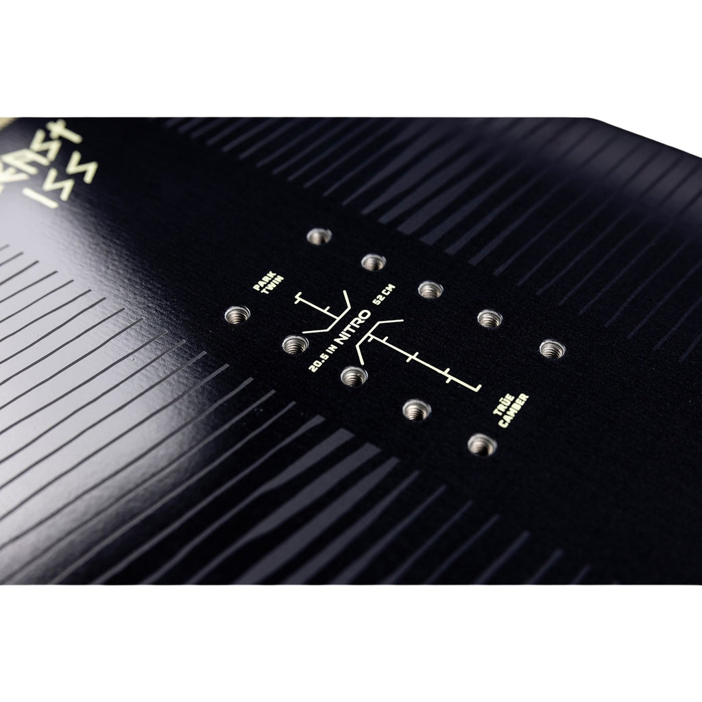The 2026 Nitro Beast is a high-octane, competition-ready park board built in collaboration with Eero Ettala, Marcus Kleveland, and Torgeir Bergrem. This true twin beast is engineered for ultimate pop, precision, and durability with Nitro’s aggressive Trüe Camber profile and an ultra-stiff flex. Ballistic Impact Panels and Ureshred Sidewalls reinforce the board for heavy rails and big landings, while Diamond Bands add explosive response for pro-level tricks. If you're hunting progression or prepping for podiums, the Beast is built to take your freestyle to the next level—with the pop and power to back it up.