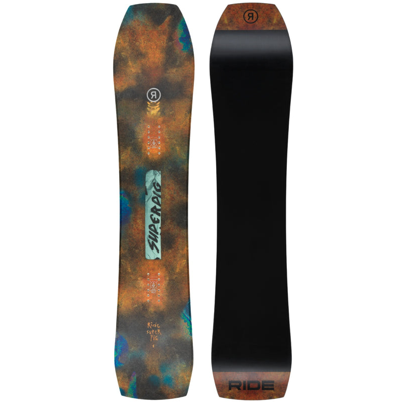 The RIDE Superpig is a power-loaded directional board that blends speed, tech, and versatility into a compact, aggressive ride. Built off the beloved Warpig shape, the Superpig packs in a stiffer flex and camber-dominant profile for riders who demand more precision and control. Thanks to its volume-shifted shape, you can ride this board 6–10cm shorter than your standard length without sacrificing float or stability. A tapered Bi-Radial Sidecut improves edge hold and turn transitions, while Slim Walls and Carbon Array 5™ add responsiveness and dampening for a smooth, controlled ride at any speed. This beast thrives everywhere from steeps to pow, groomers to side hits.