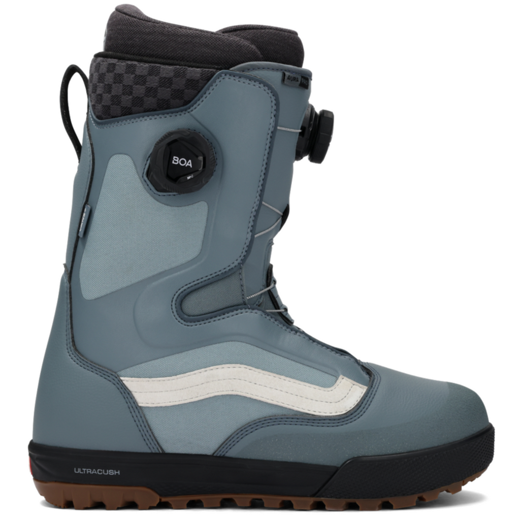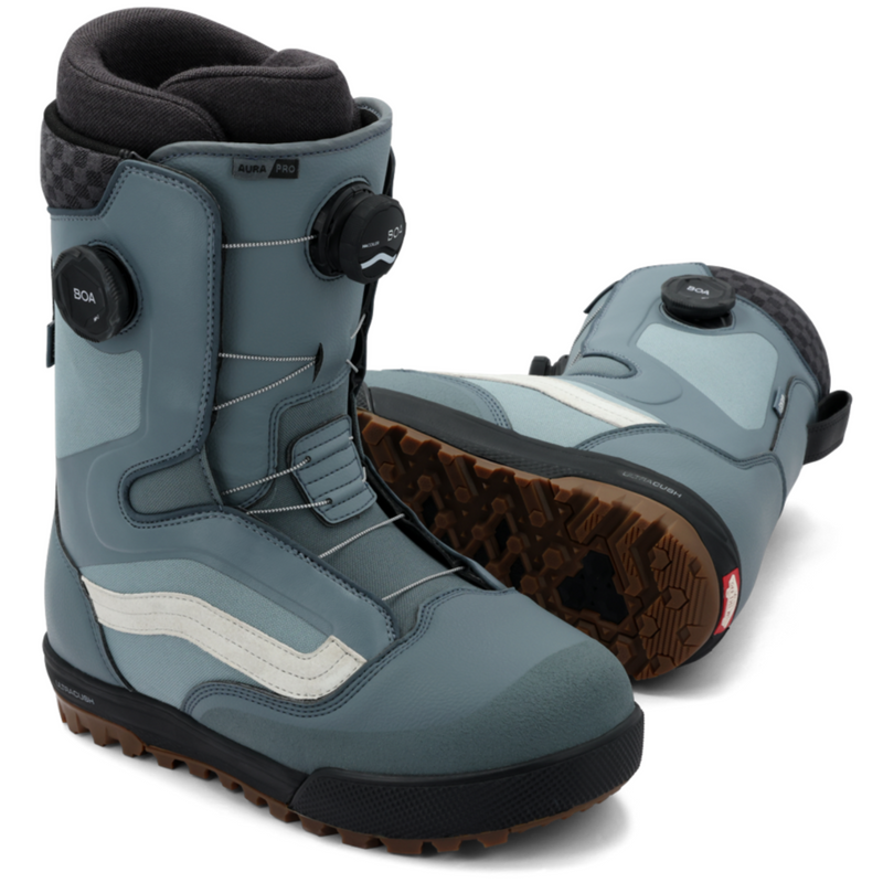 The 2026 Vans Aura Pro is built for riders who want comfort, versatility, and precision. With a dual-zone BOA® Fit System featuring Custom Focus for micro-adjustability, these boots lock in heel hold and offer a responsive yet forgiving flex. The V2 UltraCush™ Smartwool® liner and V2 POPCUSH™ footbed keep your feet warm, cushioned, and supported, while the V2 Waffle Pro outsole adds dependable traction. From all-mountain freeride to freestyle laps, the Aura Pro delivers balanced performance with classic Vans style.