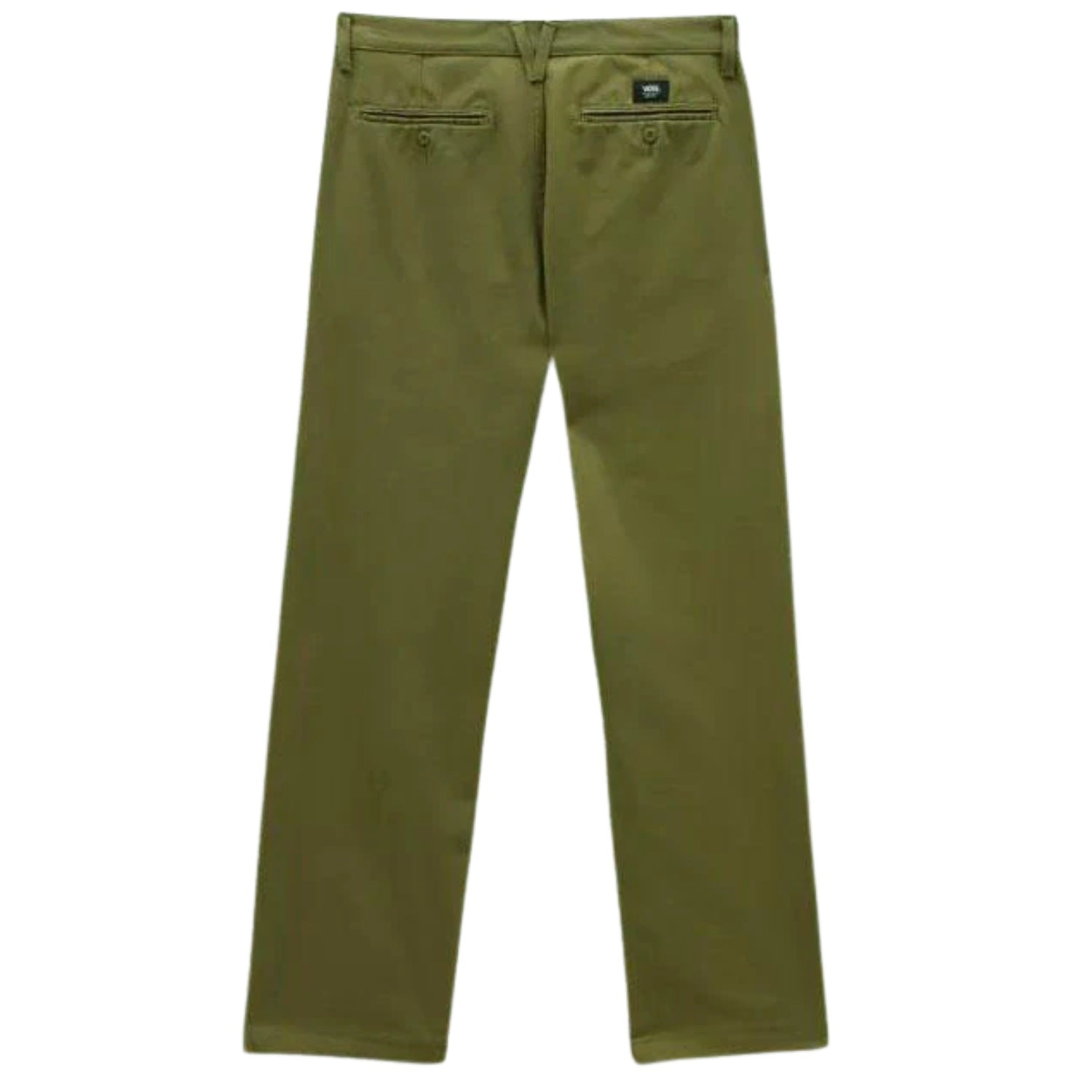 The Vans Authentic Chino Relaxed Pants offer a blend of classic style and skate-ready durability. Crafted from a soft cotton-rich fabric with added stretch, these pants provide comfort and flexibility for everyday wear. Featuring front hand pockets with a coin pocket, rear welt pockets with button closures, and embroidered 'Drop V' bartacks for reinforcement, they combine functionality with subtle branding. The relaxed fit ensures extra leg room, making them suitable for various activities.