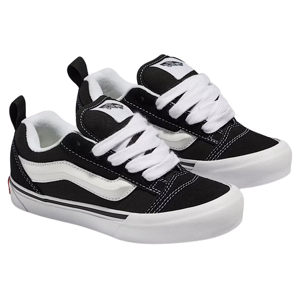 The Vans Knu Skool Shoes for kids deliver big style in a scaled-down silhouette inspired by the bold skate shoes of the ’90s. Designed for comfort, durability, and standout personality, this youth-sized version features the same puffy tongue, exaggerated details, and supportive fit as the adult original — with features tailored for all-day play and growing feet.