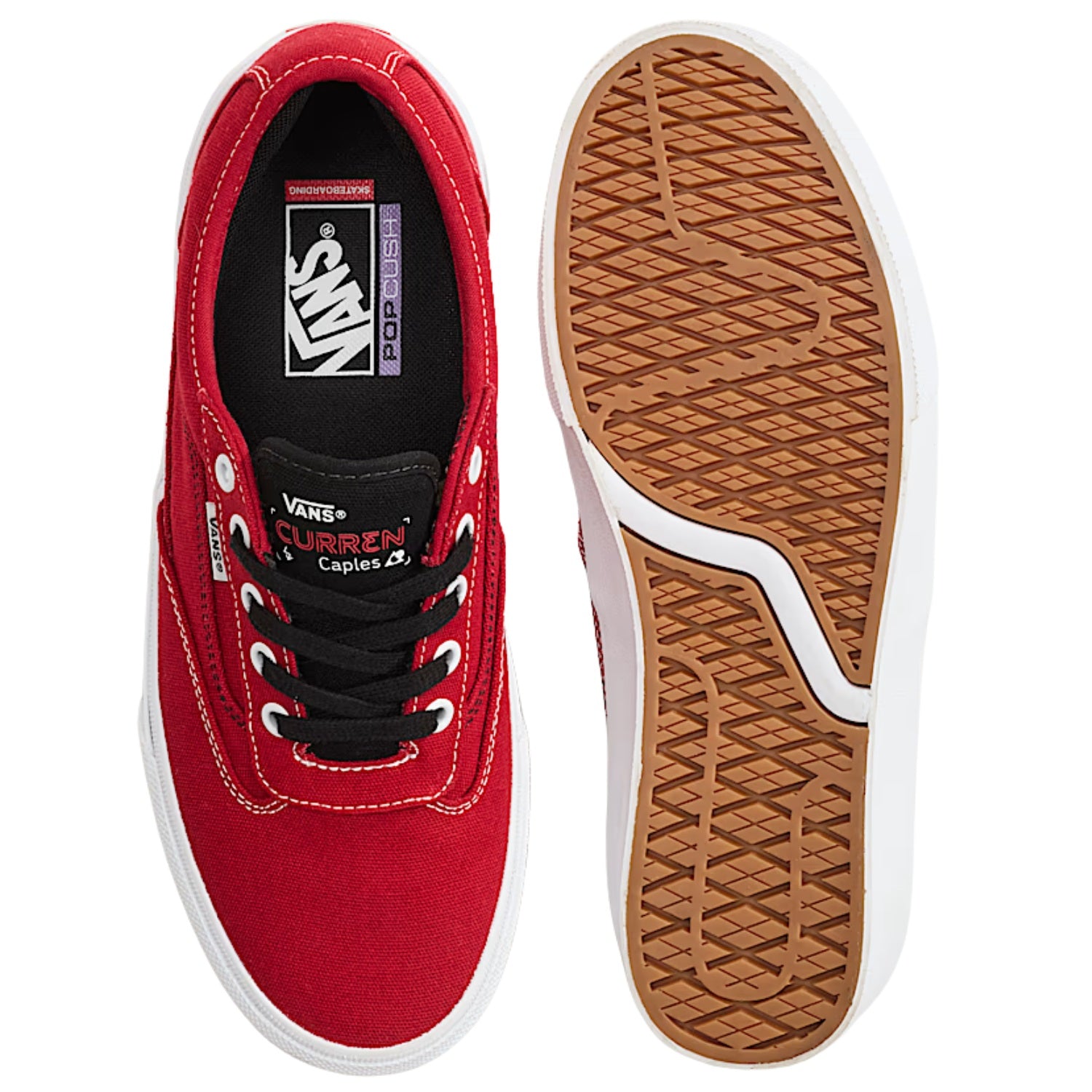 The Vans Skate Curren Caples Shoe is built for power, precision, and durability—exactly what Curren rides. With upgraded DURACAP™ reinforcements, SickStick™ rubber, and PopCush™ cushioning, it delivers pro-level performance in a classic silhouette. Clean lines and enhanced boardfeel make it a favorite for skaters pushing their limits.